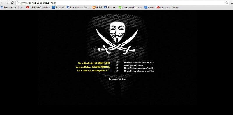 O descontentamento da torcida é tão grande que sobrou até para o site oficial do clube. Na tarde desta segunda-feira, o portal esporteclubebahia.com.br foi invadido por hackers e teve seu conteúdo alterado. "Ou a diretoria incompetente deixa o Bahia imediatamente, ou assume as consequências", dava-se para ler na tela com fundo preto e outras reivindicações.