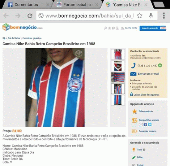 O anunciante atende pelo nome de “Teu” e pediu pela camisa o valor R$100. Caso seja realmente original, prova mais uma vez o descaso da dupla "Nikeshoes" com o clube.